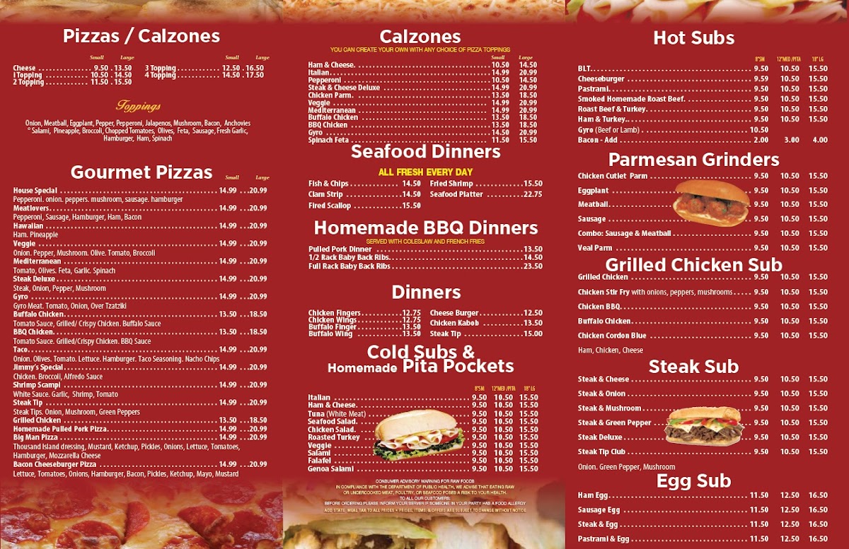 Welcome to Jimmy's Pizza (See You Tomorrow), a hidden gem located at 185 W Main St, Dudley, MA. This charming eatery delights with a menu that caters to every palate. Their wraps and pita pockets are a highlight, featuring options like Chicken Caesar and Buffalo Chicken, each priced at just $11.50. For those seeking comfort food, their Parmesan grinders, such as the Chicken Cutlet Parm and Meatball varieties, are both satisfying and affordable at $9.50.